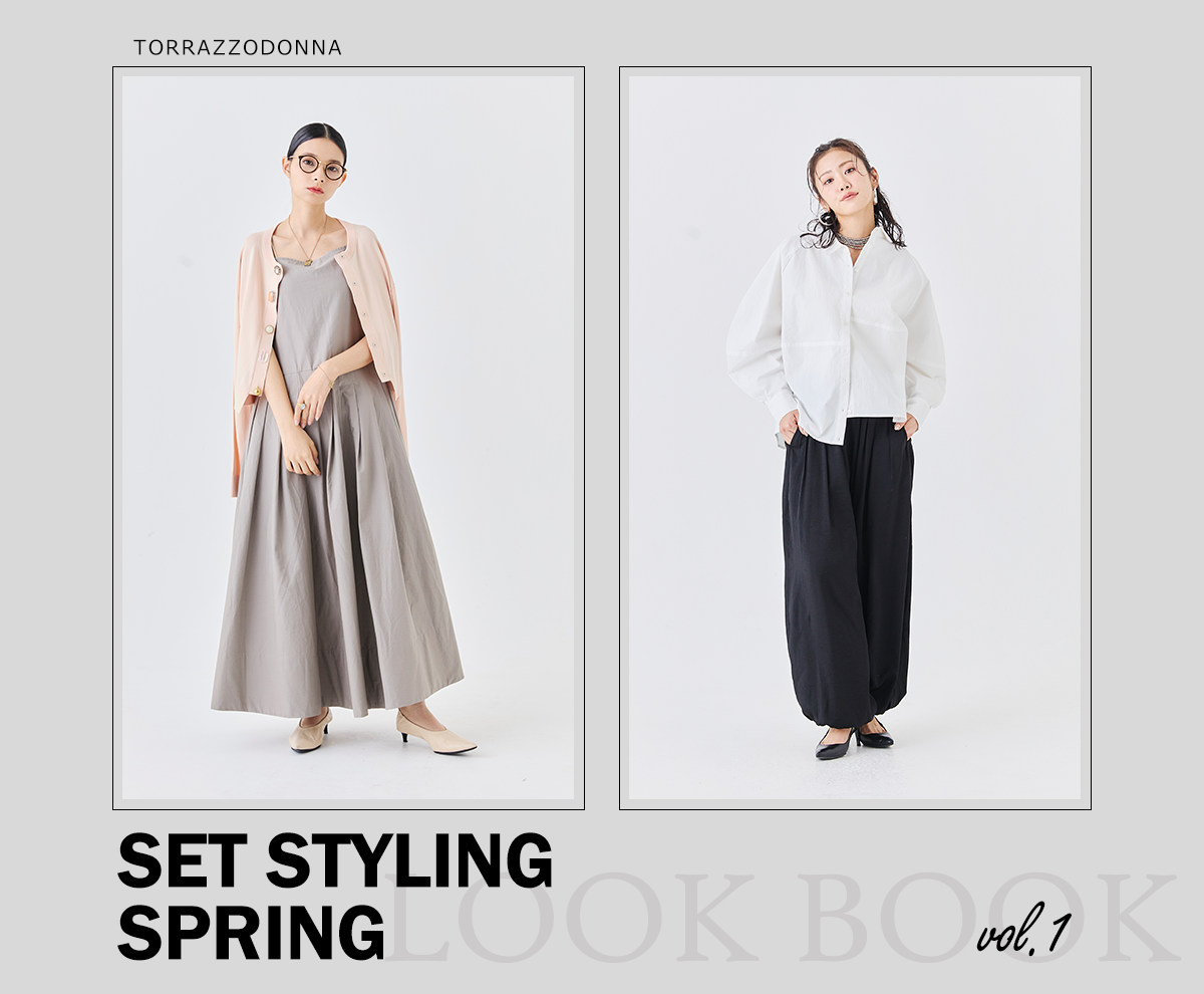 TORRAZZODONNAオンライン掲載中のお洋服を使った【春スタイリング】を集めました。 デザイナーお墨付きのおすすめコーデです。トレンド感のあるスタイリングを是非セットでお楽しみください。 TOPS: 2026SSビジューカーディガン(6265-685) ONE PIECE: プリーツマキシドレス(6265-573) TOPS: 2026SSビジューカーディガン(6265...